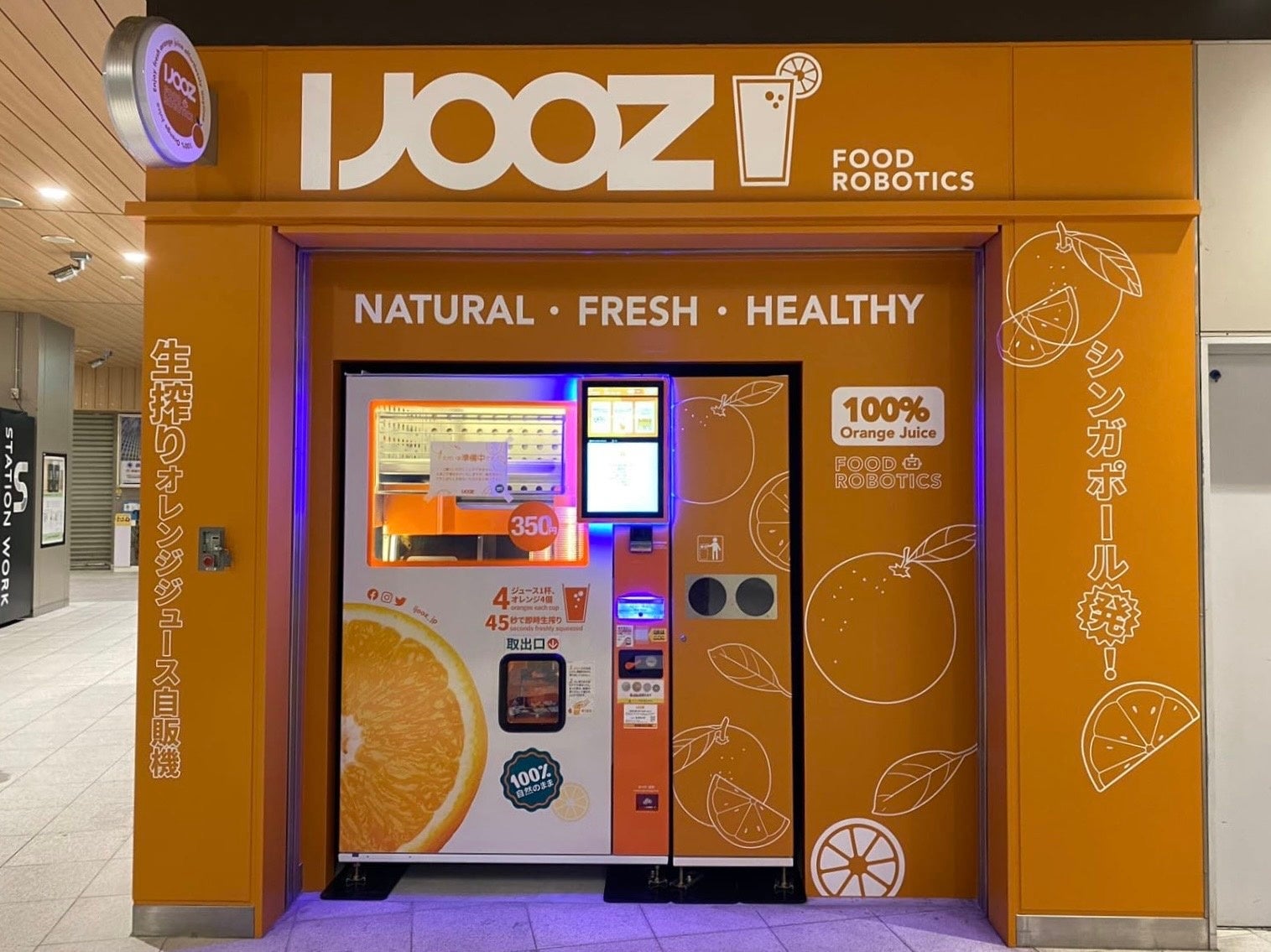 シンガポールのIoTテクノロジー企業・IJOOZ社が製造する最新の生搾りオレンジジュース自販機は、シンガポールで約820台が稼働、日本では現在東京都、神奈川県、千葉県、埼玉県、茨城県、栃木県、大阪府、京都府、兵庫県で約120台を展開しているという。