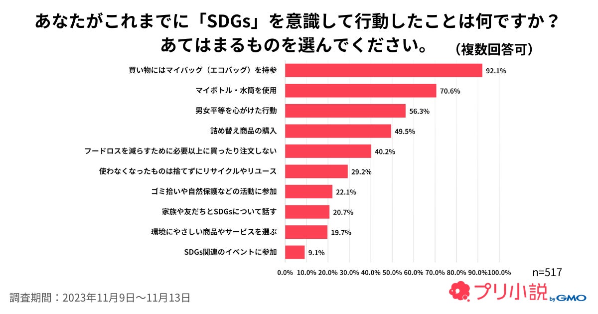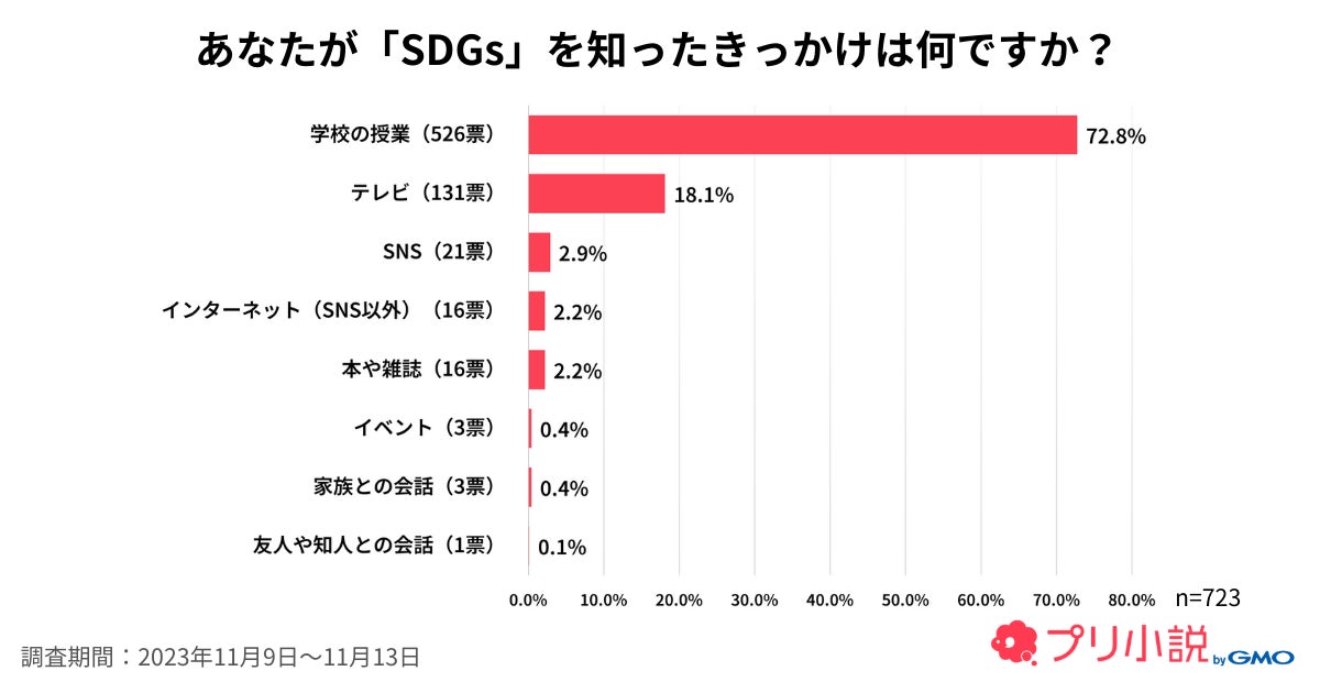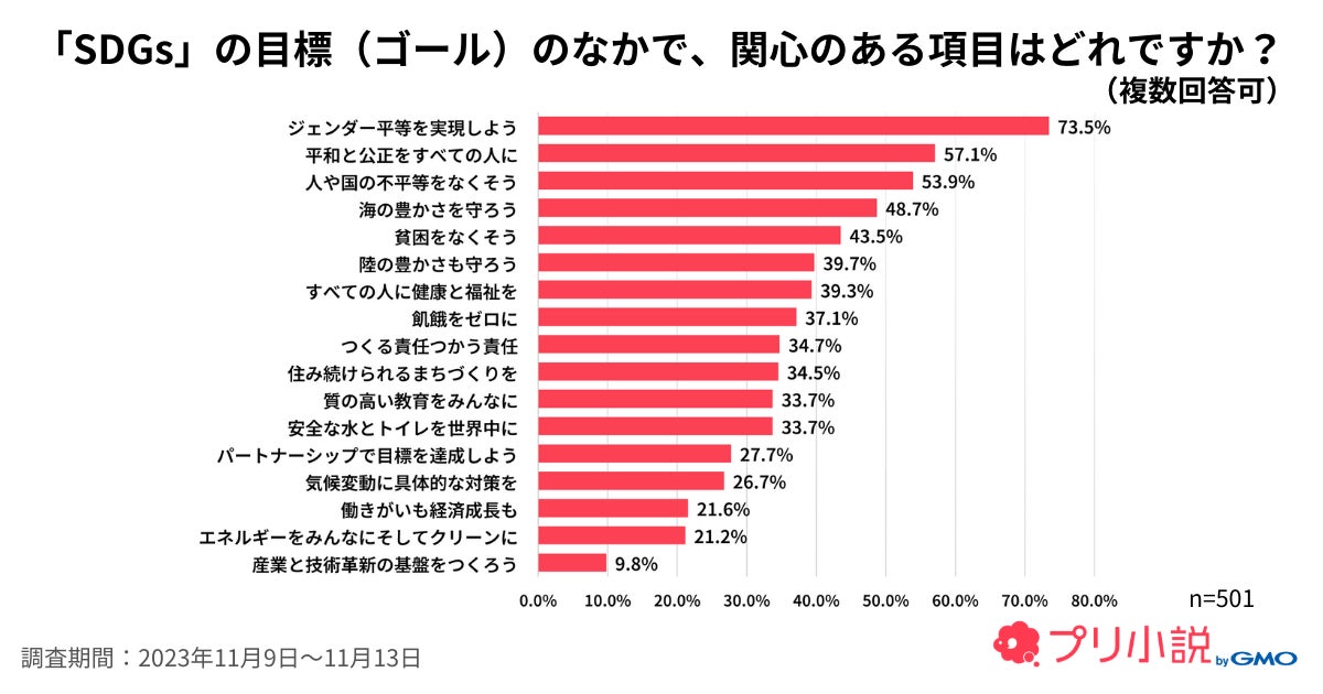 GMOインターネットグループのGMOメディアは、運営するチャット型小説サービス「プリ小説 byGMO」のユーザーを対象に「SDGs」に関するアンケートを実施し、結果を公表した。