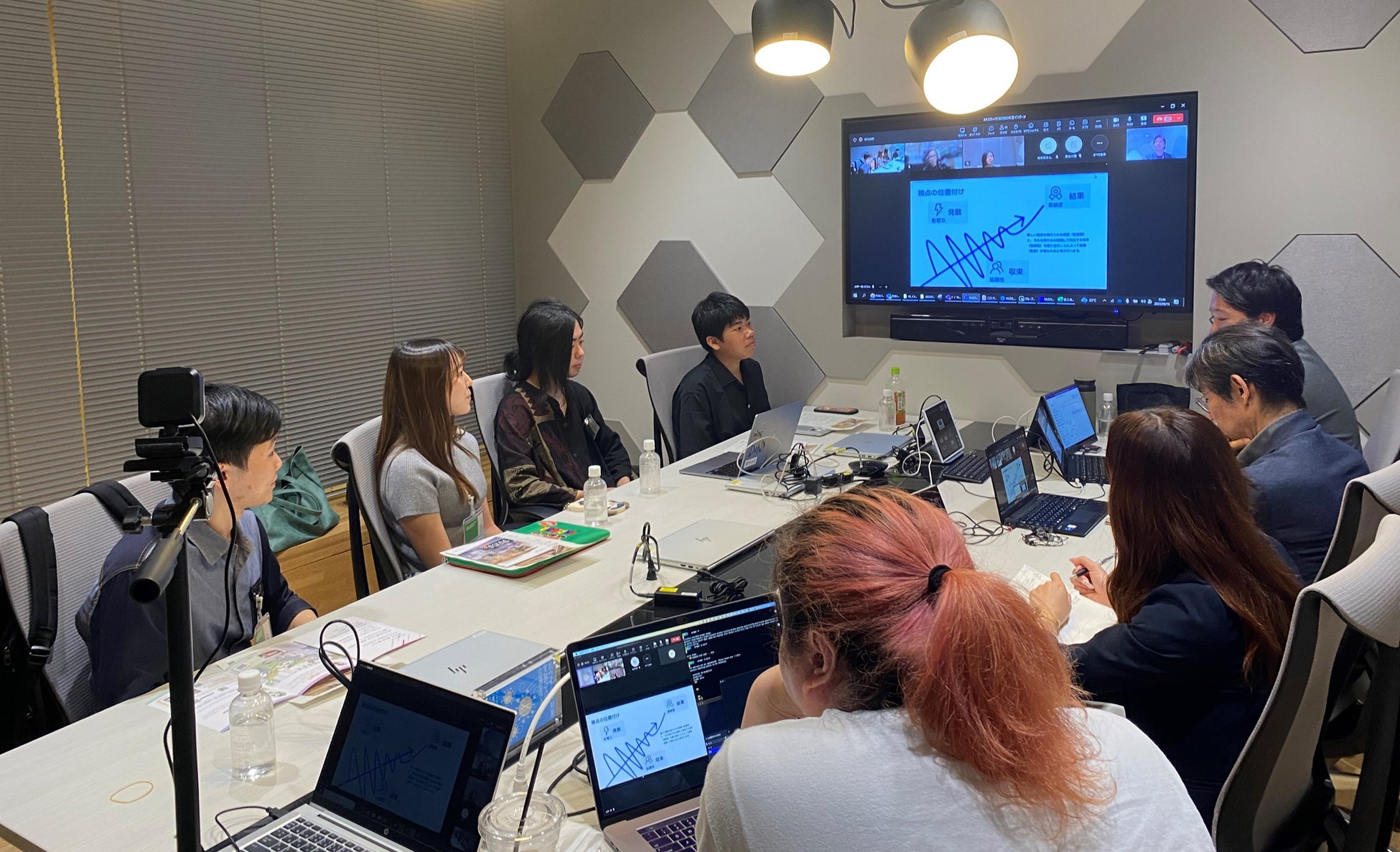 産学連携授業は、同学と共同で学内インターンシッププログラムの一環として実施し、3年生5名が主にオンラインで参加。