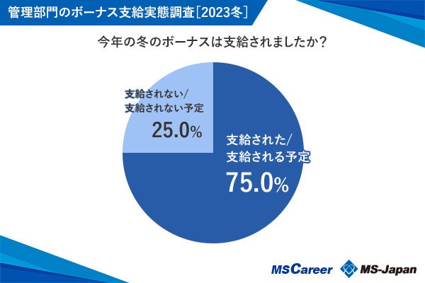 2023年冬のボーナス有無に関する調査では、約8割の75%が「支給」、25%が「支給されない」状況であることがわかった。