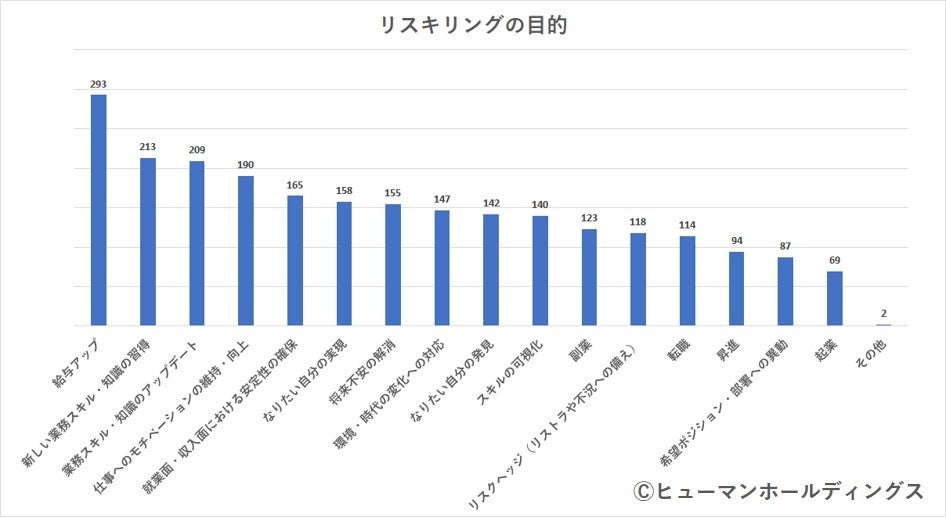 ■「リスキリングの目的」は、1位「給与アップ」2位「新しい業務スキル・知識の習得」3位「業務スキル・知識のアップデート」