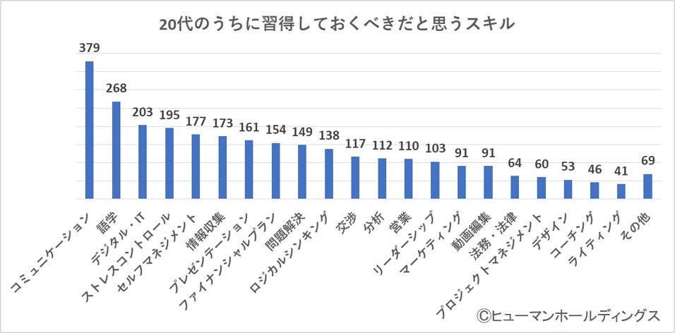 ■「20代のうちに習得しておくべきだと思うスキル」は、1位「コミュニケーション」2位「語学」3位「デジタル・IT」