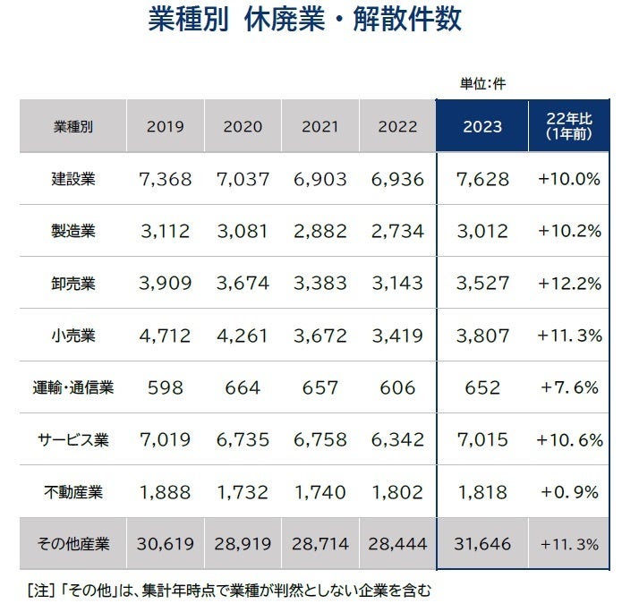帝国データバンク(以下、TDB)は、2023年1~12月に発生した企業の休廃業・解散動向について調査・分析を行い、結果を公表した。