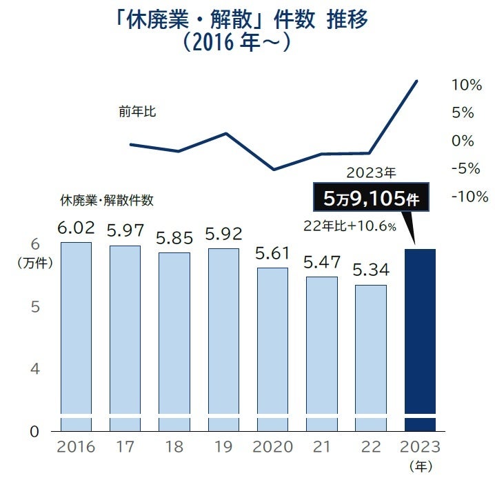 ■2023年の休廃業・解散は5万9105件、前年比10%増。「あきらめ廃業」広がりの兆し