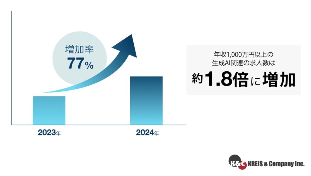 このような社会的・制度的背景を踏まえ、クライス&カンパニーは、生成AI関連職種の求人が前年比で約2倍に達したとしている。