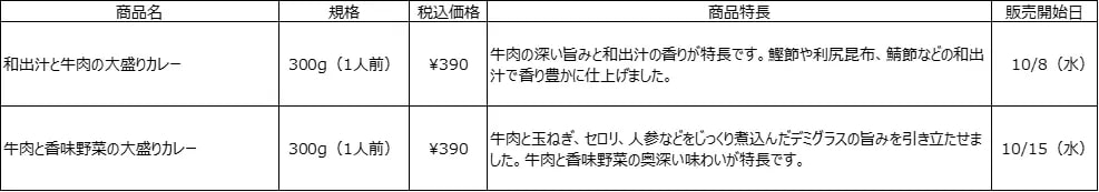 今回、1食300グラムの大盛りサイズのカレーのラインナップを拡充し、「和出汁と牛肉の大盛りカレー」と「牛肉と香味野菜の大盛りカレー」の2種を発売するという。