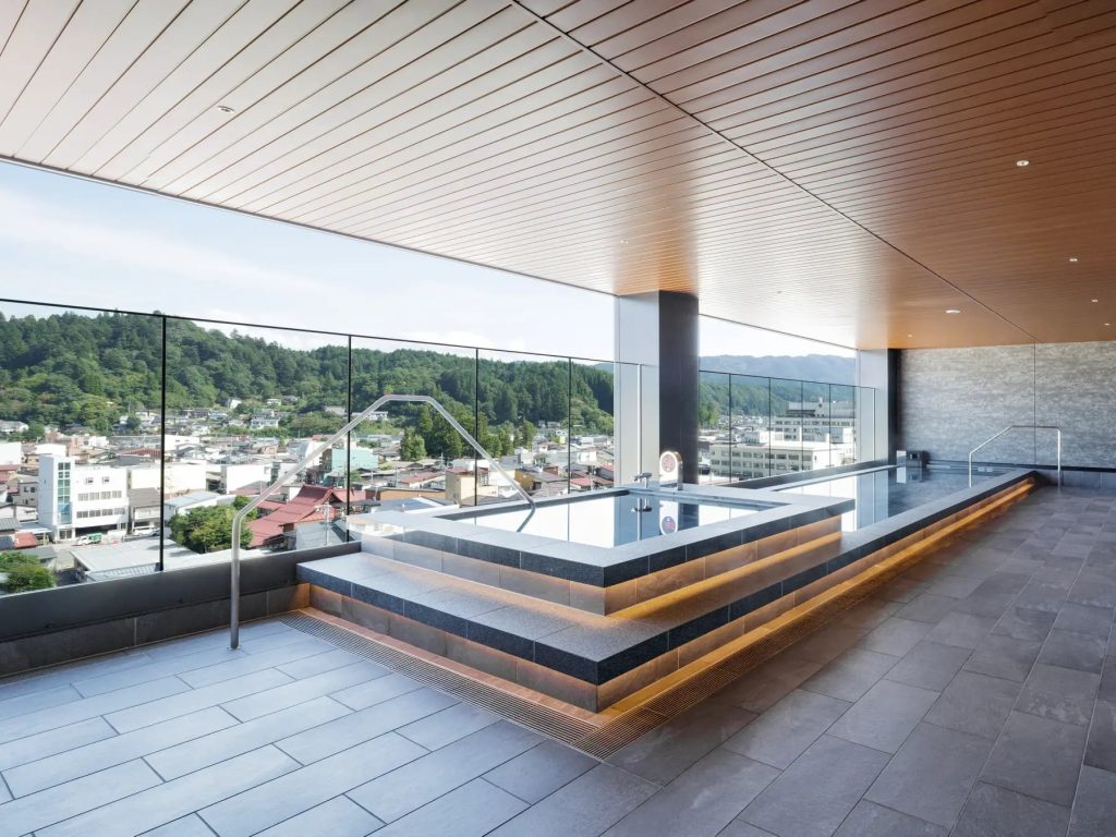 最上階には、地元温泉を引いた露天風呂を設け、飛騨高山の景色を見渡せる開放的な演出を用意。また、大きな窓が付いた開放的な「展望サウナ」からも飛騨高山の景色を一望できるとのことだ。