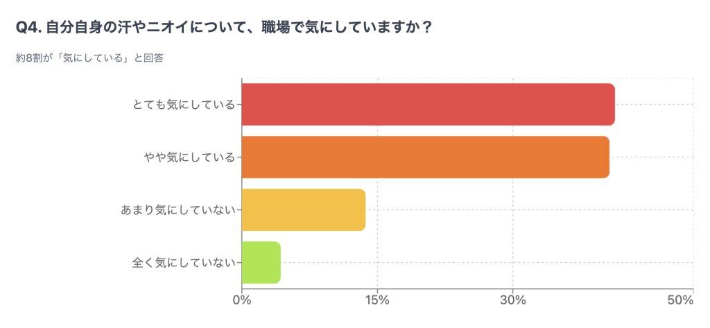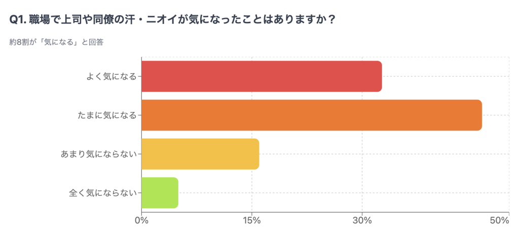 ■約8割の社会人が職場で他人の汗・ニオイが気になると回答
