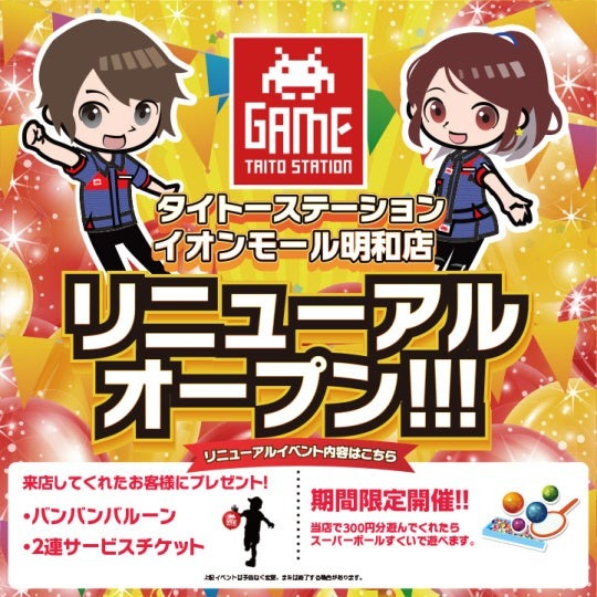 タイトーは、運営するアミューズメント施設「タイトーステーションイオンモール明和店」リニューアルオープンしたと発表した。