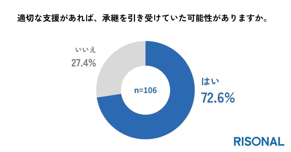 ◼️72.6%が、適切な支援があれば承継を引き受けていた可能性あり