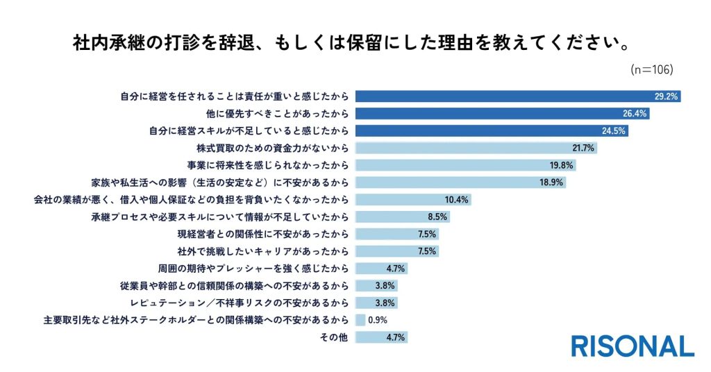 ◼️社内承継を辞退する最大要因は「責任の重さ」