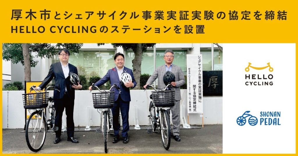 OpenStreetは、江ノ島電鉄、神奈川県厚木市と「厚木市のシェアサイクル事業の実証実験に関する協定」を締結し、シェアサイクルプラットフォーム「HELLO CYCLING」を活用したシェアサイクル事業の実証実験を、厚木市内で開始したことを発表した。