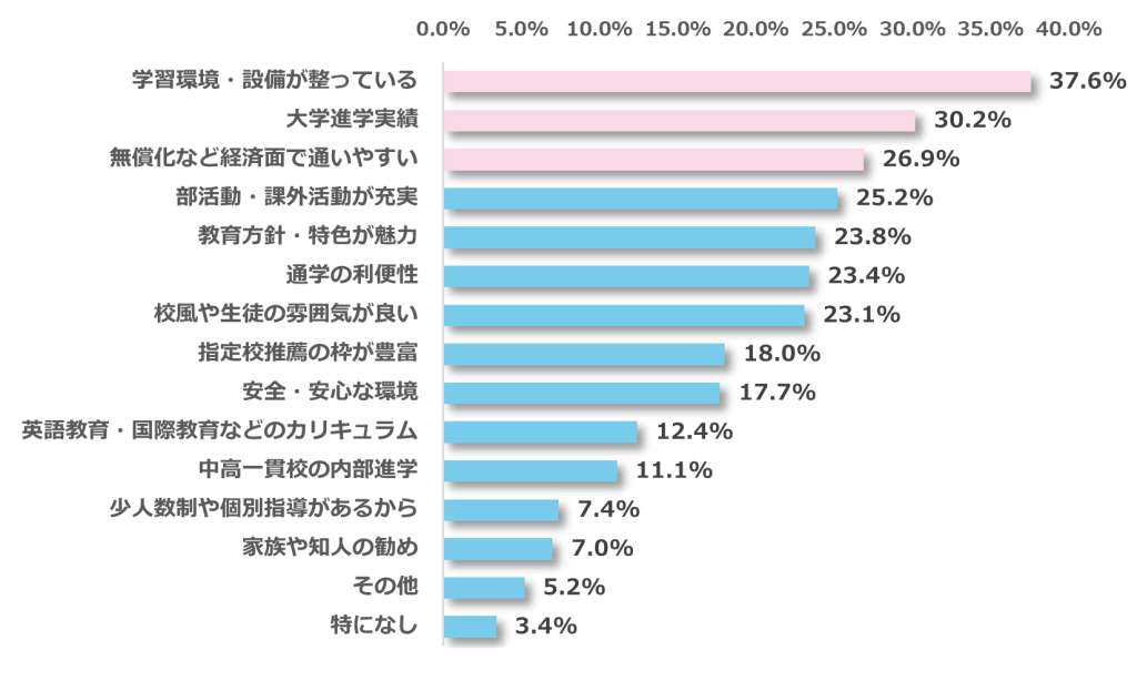 ■私立高校を志望する理由、最多は「学習環境・設備が整っている」