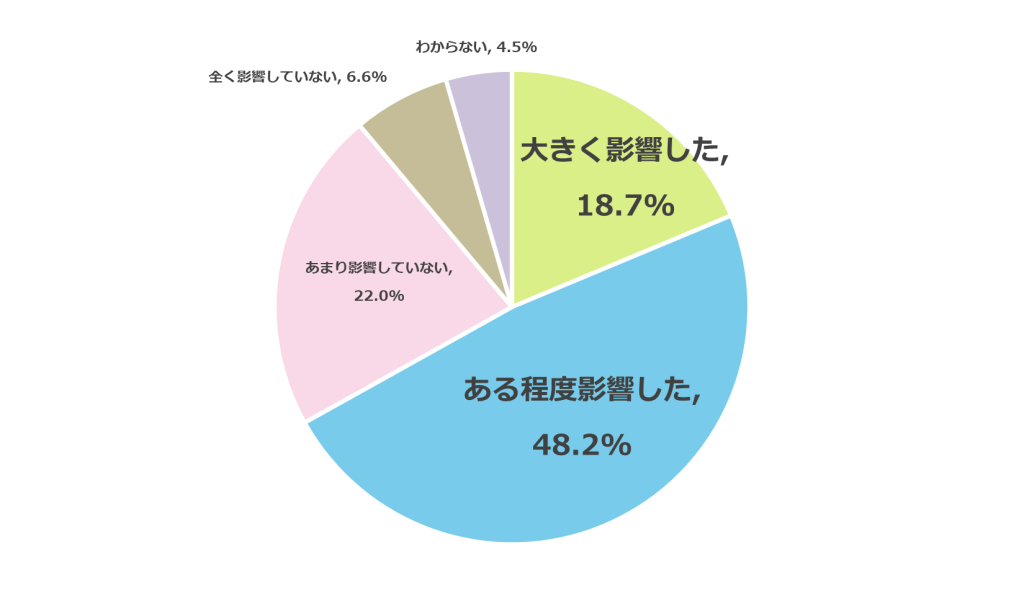 私立高校無償化制度の導入が、子どもの志望校選びに与えた影響について、66.9%が「影響した」と回答。経済的負担の軽減により、より多くの学校を比較・検討する機会が増えたことがうかがえる。