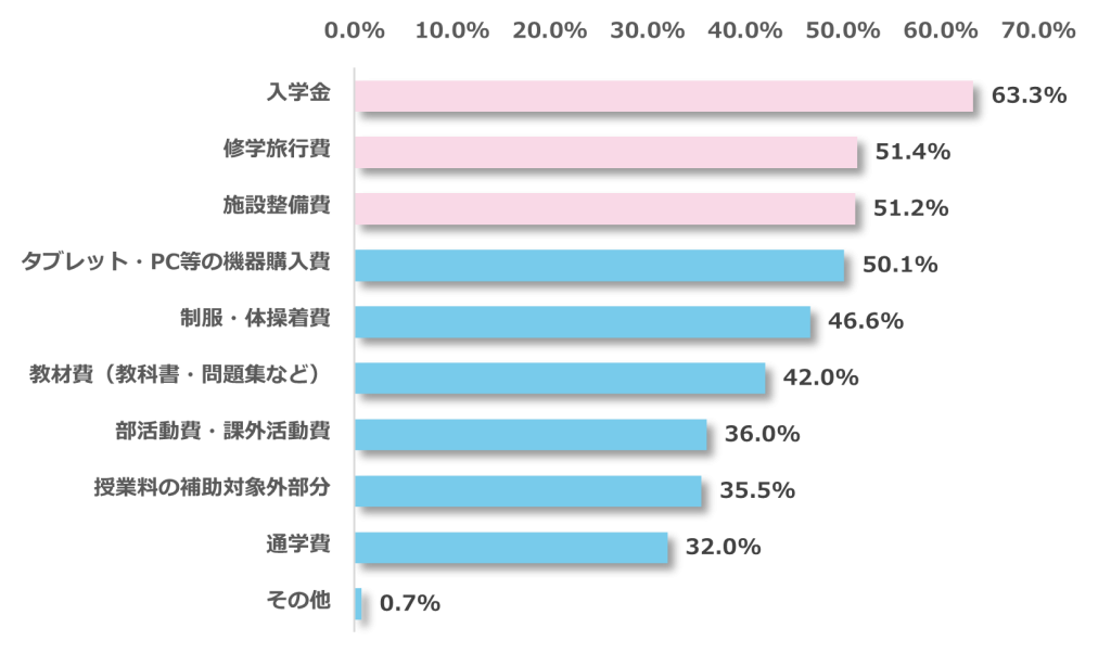 ■“出費ゼロ”ではない私立高進学 保護者が最も不安を感じる費用は「入学金」