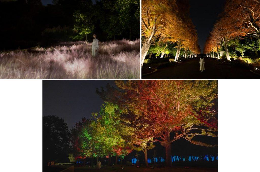 また、「光色の草原 – カピラリス」のカピラリスの穂は現在ピンクに色づいており、11月中旬から下旬頃には「生命は連続する光 – ラクウショウ」のラクウショウ並木、「呼応する木々 – フウ」も紅葉を迎える予定とのことだ。