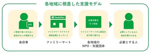 同社は、地域の食支援と食品ロス削減を目的に、2021年4月より「ファミマフードドライブ」を開始。全国の店舗を食品寄付の回収拠点とし、集まった食品は、各地のNPOや社会福祉協議会などの協力パートナーを通じて、支援を必要としている人々に提供している。