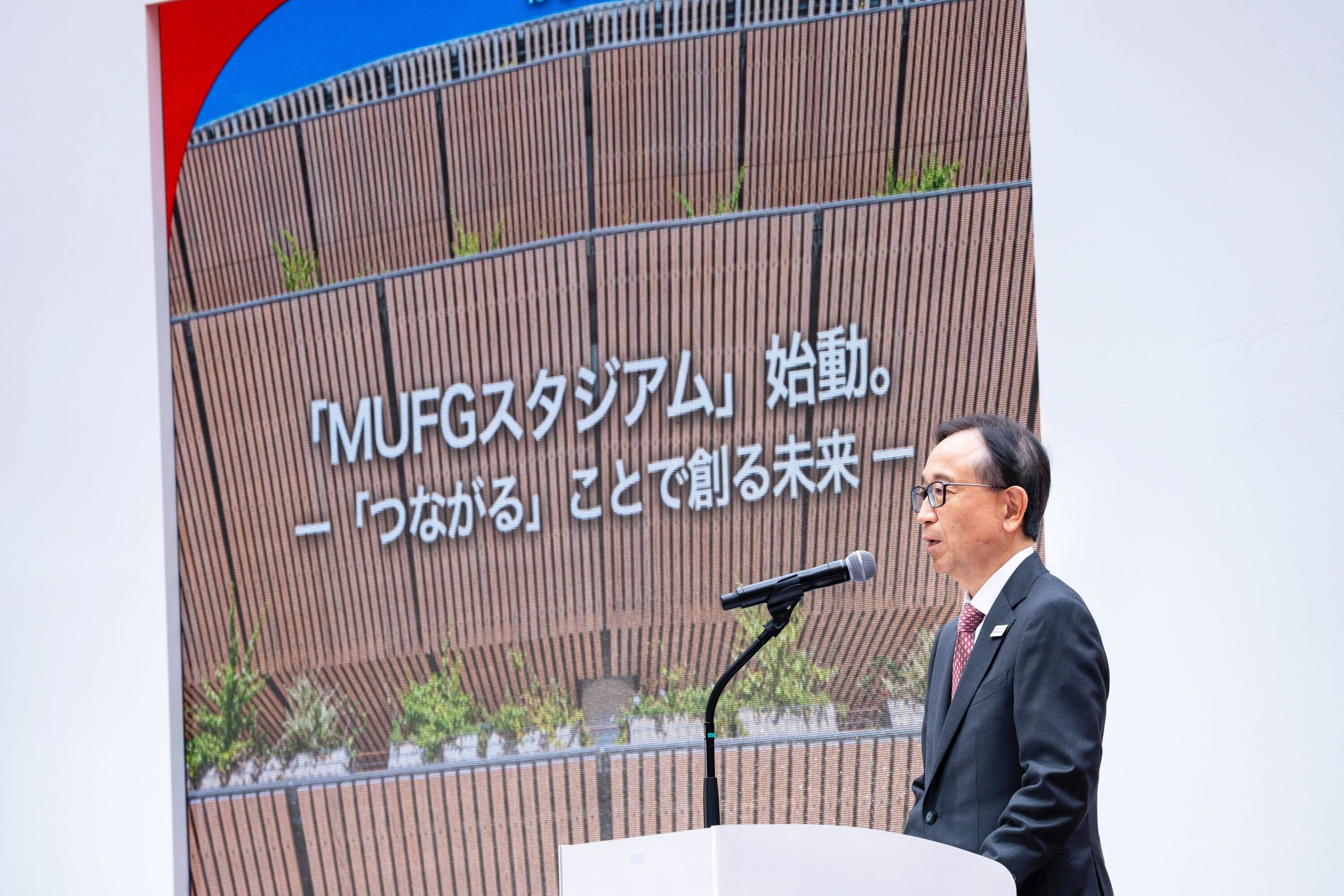 竹内氏「国立競技場はこれまで、日本のスポーツと文化の象徴であり続けてきました。これからは『MUFGスタジアム』として、伝統と格式を大切にしながらも、未来へと向かう挑戦を続けてまいります。ここは単なる建物ではありません。人々の感情が共鳴し、次世代へと受け継がれる『社会の心臓』です。地域と共に、企業と共に、そして皆さまと共に。MUFGスタジアムから新しい循環を生み出し、次の時代にふさわしい共創の舞台を創っていきたいと考えています」