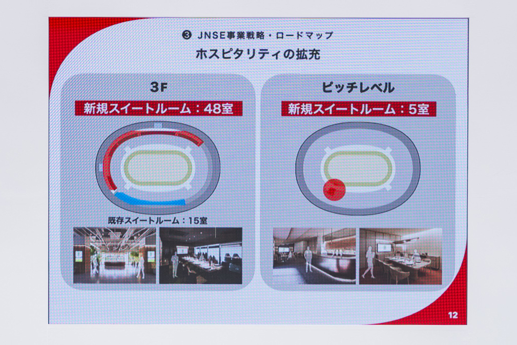 同時に、スタジアム機能のアップデートも検討されている。JNSEは今後、スポーツ競技と音楽イベントを両立する革新的な天然芝フィールドの維持管理手法の導入や、スイートルームを中心としたホスピタリティエリアの拡充など、ハード面の整備を推進。リボンビジョンの増設や大型ビジョン、館内サイネージを同期させる統合演出システムの構築など、技術面も強化する予定だ。