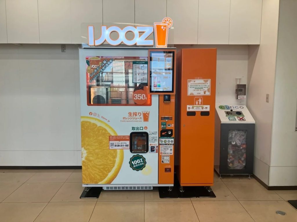 IJOOZは、広島県東広島市のJR西条駅構内で、生搾りオレンジジュース自動販売機「IJOOZ(アイジュース)」の稼働を開始した。価格は1杯350円。