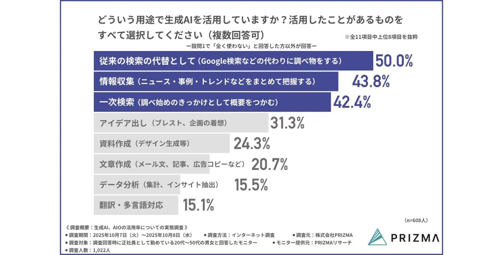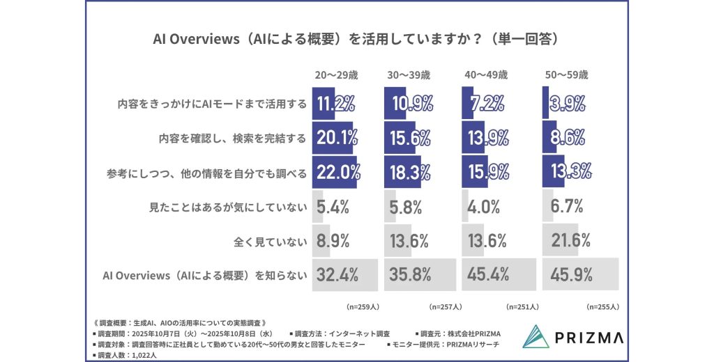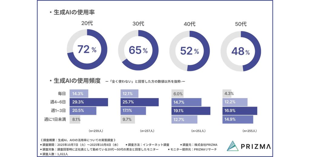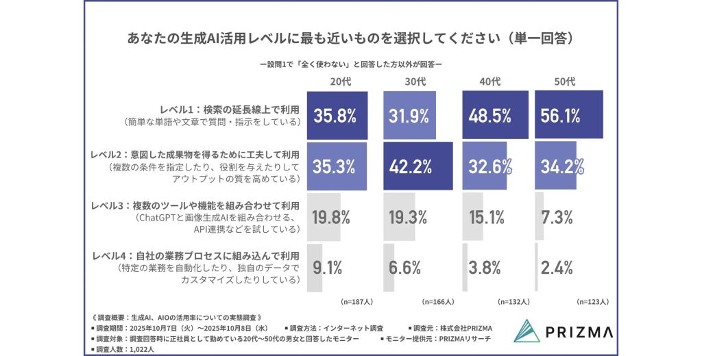 PRIZMA『生成AI、AIOの活用率についての実態調査』