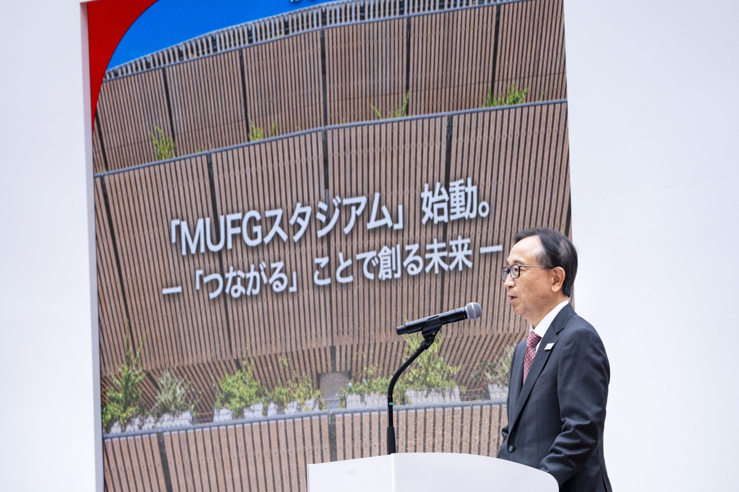 竹内氏「巨大なネットワークと顧客基盤を有するMUFGは、文化振興や地域連携をはじめとした、あらゆる社会課題解決にも積極的です。この場所は、単なる建物ではありません。人々の感情が共鳴し、世代を超えて受け継がれる“社会の心臓”です。ナショナルスタジアムパートナーを通じて、私たちは皆さまと共に、未来へ向けて歩んでまいります」