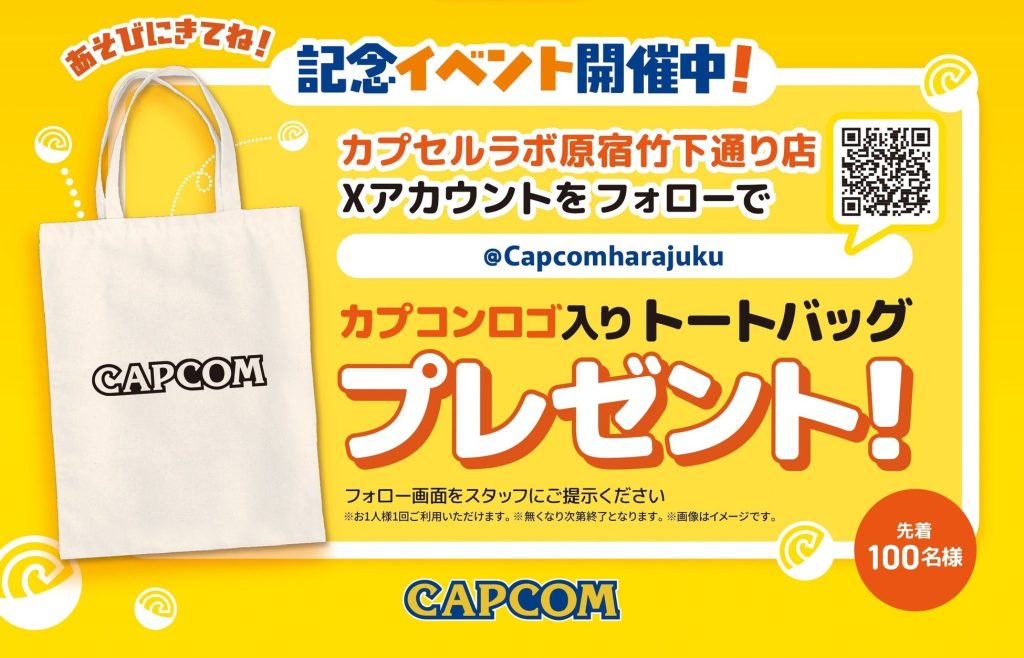 オープンを記念して、公式X(旧Twitter)アカウントのフォロー画面を提示すると、先着100名にカプコンロゴ入りトートバッグをプレゼントするキャンペーンを実施するとのことだ。