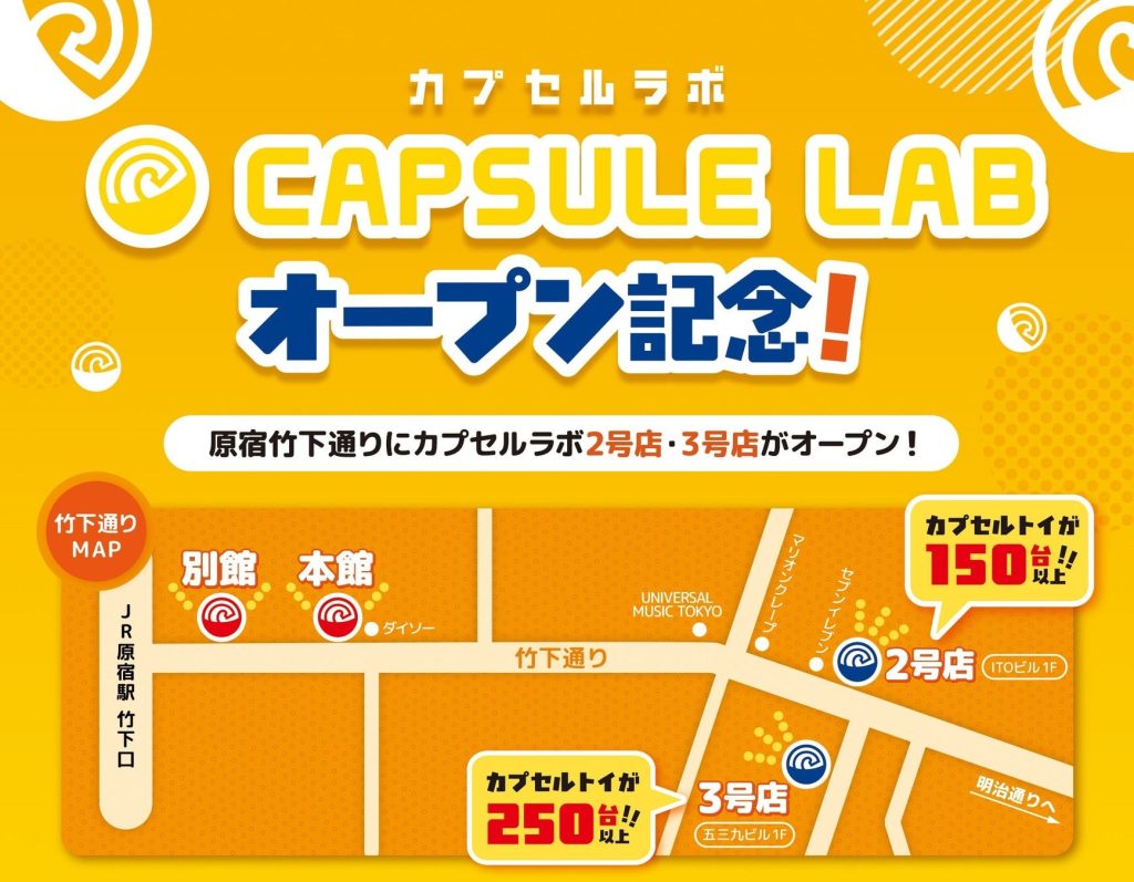 今回の出店により、原宿エリアにおける「カプセルラボ」店舗は計4拠点となり、全店舗をあわせたカプセルトイの設置台数は2,900台を超えるとしている。