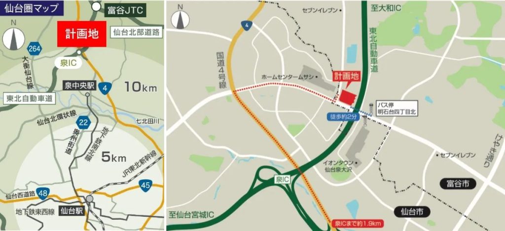 地上4階建て(倉庫床3層)で、延床面積約15,185平方メートルのマルチテナント型物流倉庫で、東北自動車道「泉」ICから約1.6キロメートルに位置し、国道4号線との接続にも優れたアクセス環境を有するとしている。また、仙台市中心部にも30分圏内でアクセス可能とのことだ。