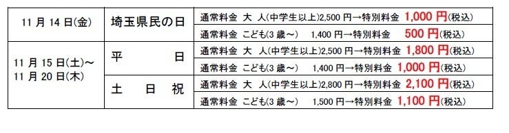 同施設では、11月14日の埼玉県民の日に合わせて「勝手に埼玉県民割!」を実施。