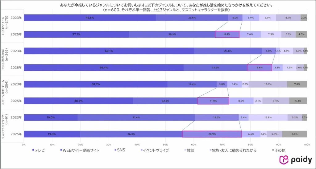 SNSは推し活を始めるきっかけとして2023年から拡大、特にマスコットキャラクターはSNSをきっかけに始める人が多い傾向に。