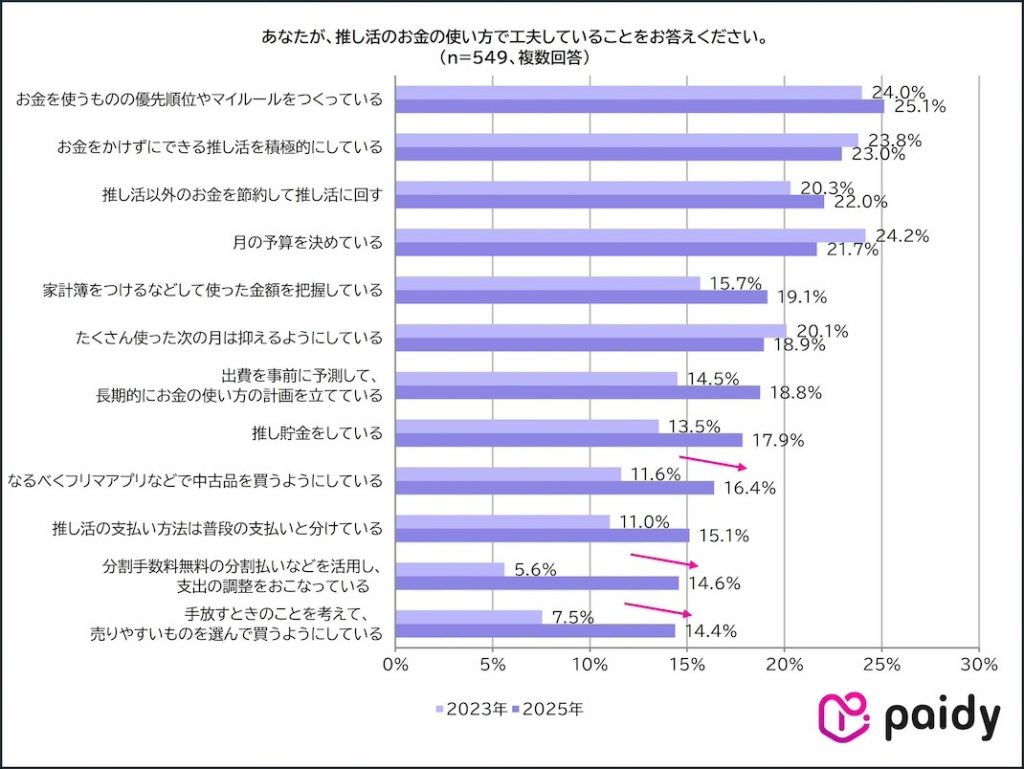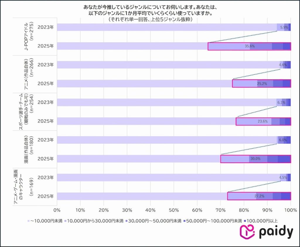 あと払い(BNPL)サービス「ペイディ」を提供するPaidyは、「いい推しの日」にあわせて、推し活をしている18〜39歳の全国の男女600人を対象に「みんなの推し活大調査2025」を実施し、結果を公表した。