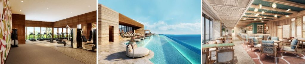 2階には、24時間利用可能なフィットネスセンターを完備。最上階には、伊良部大橋や美しいサンセットを一望できる「インフィニティプール」とバー「サンベア デイクラブ」を併設しているとのことだ。