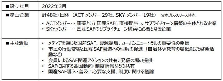 同団体は、SAFの製造や供給に関与する「ACTメンバー」と、供給体制を支援する「SKYメンバー」で構成されており、同社は後者として参画するという。
