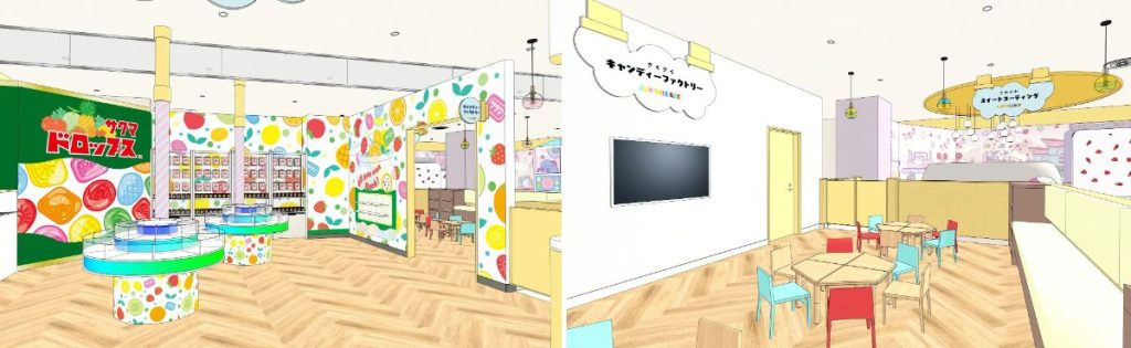 また、物販・ワークショップエリアでは、キャンディの詰め放題や綿あめ自販機、オリジナルのサクマドロップス缶を作る「キャンディラボ」などを展開するとのことだ。