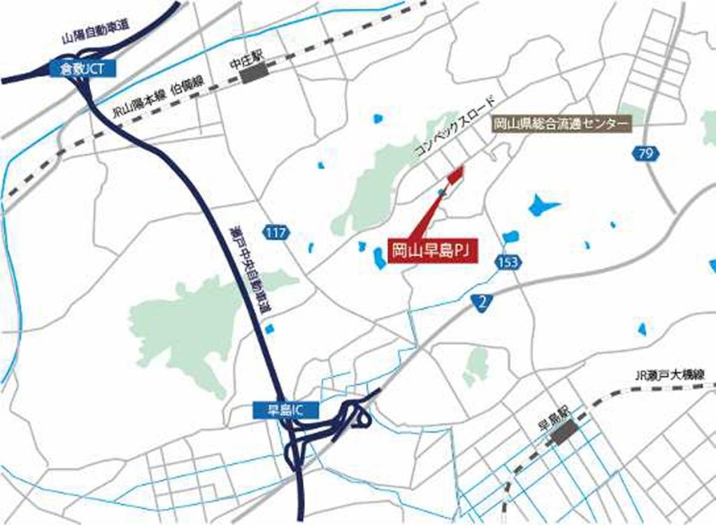 山陽自動車道「早島」ICから約3.0キロメートル、JR山陽本線「中庄」駅から約2.5キロメートル