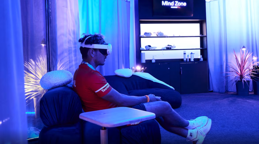 たとえば、オリンピック史上初となる「Mind Zone」。選手村のフィットネスセンター内に設置された空間で、VRヘッドセットを装着すると、エッフェル塔やオリンピックスタジアムを巡る没入型瞑想体験を味わえるもの。呼吸法とビジュアライゼーションを組み合わせたこのプログラムは、148カ国の選手たちによって2,300回以上利用され、92%が満足感を示したと報告されている。
