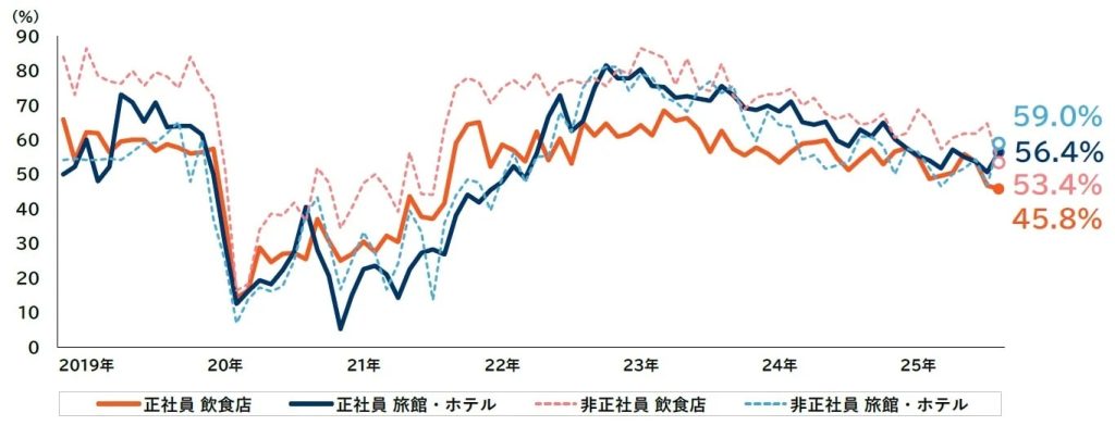 非正社員不足は28.3% 「旅館・ホテル」が59.0%でトップも全業種6割未満
