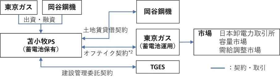 岡谷鋼機は苫小牧PSに建設用地を賃貸し、東京ガスは日本卸電力取引所や需給調整市場での市場取引を実施するとのことだ。