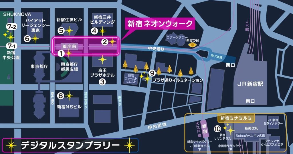 東京ナイトタイム魅力創出プロジェクト実行委員会は、東京都庁を中心とする西新宿エリアで開催するイルミネーションイベント「Shinjuku Neon Walk」にあわせ、エリア内10施設超と連携した初の大規模企画として「新宿イルミネーションデジタルマップ」を11月27日から公開すると発表した。同マップと連動した周遊企画「Shinjuku Neon スタンプラリー」を同日から実施するとのことだ。