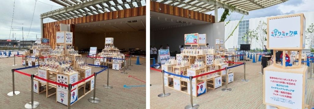 同展では、パビリオンスタッフをはじめとした万博関係者が大阪・関西万博公式キャラクター「ミャクミャク」をペイントし、それら作品を大阪ステーションシティ5階「時空の広場」に展示。