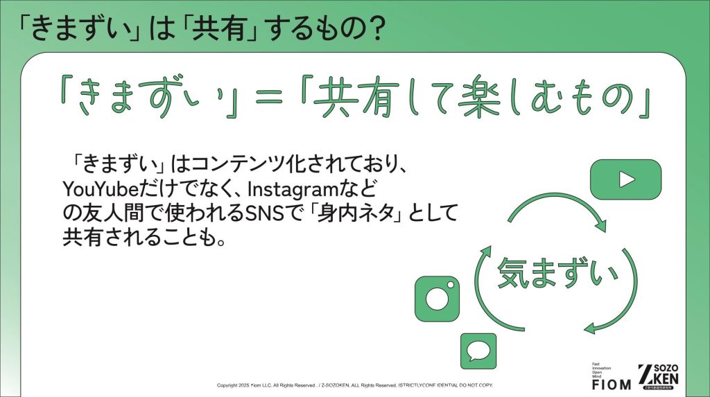 Z世代において「気まずい」は、単に避けるべき不快な感情ではなく、YouTubeやTikTok、InstagramなどのSNSにおいて、気まずい瞬間は「コンテンツ」として成立しており、友人同士の間でも「身内ネタ」として共有され、楽しまれる傾向に。