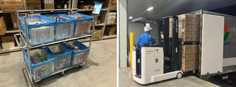 (※2)小売向け小分け出荷システム:バラ商品のピッキング生産性を向上させるため、複数オリコンをマルチ台車に纏めてピッキングを行うシステム。