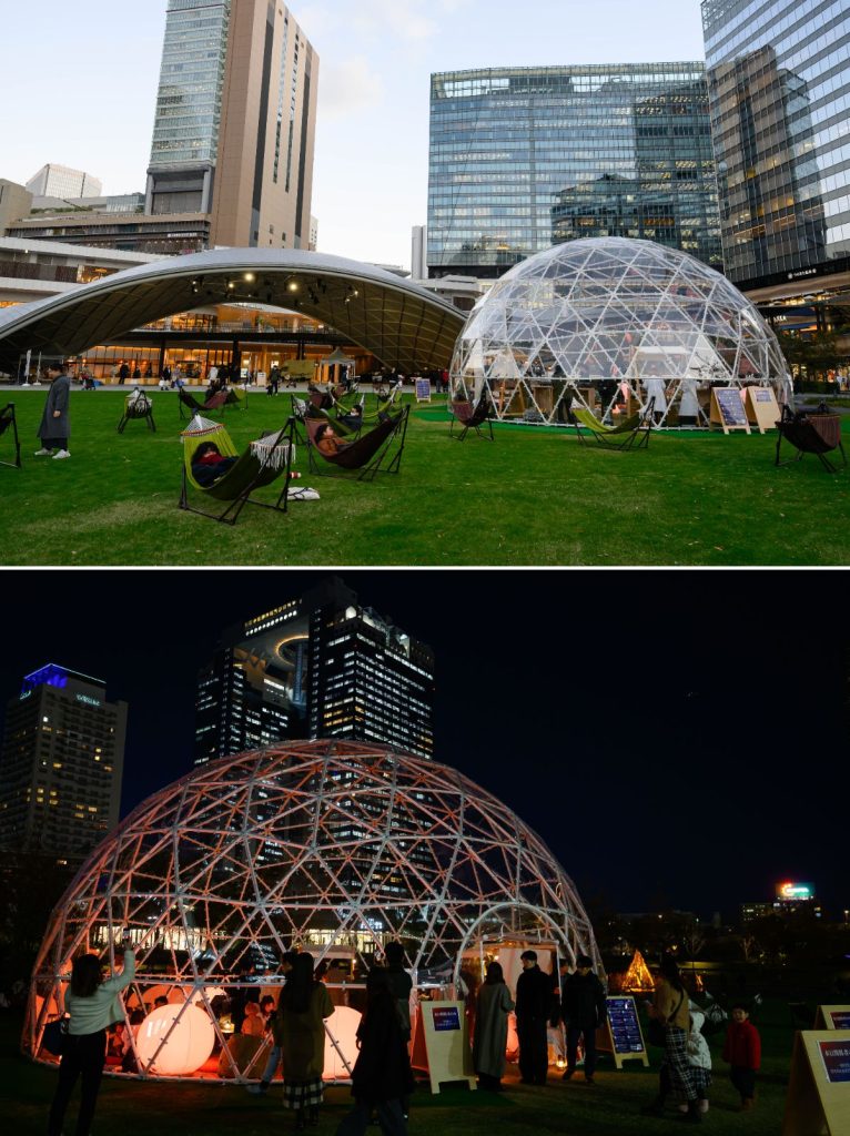 大阪・梅田エリアで冬季イベント「GRAND GREEN HOLIDAY 2025」が開幕 ドーム型ラウンジや炎を模した光のモニュメントなどが登場