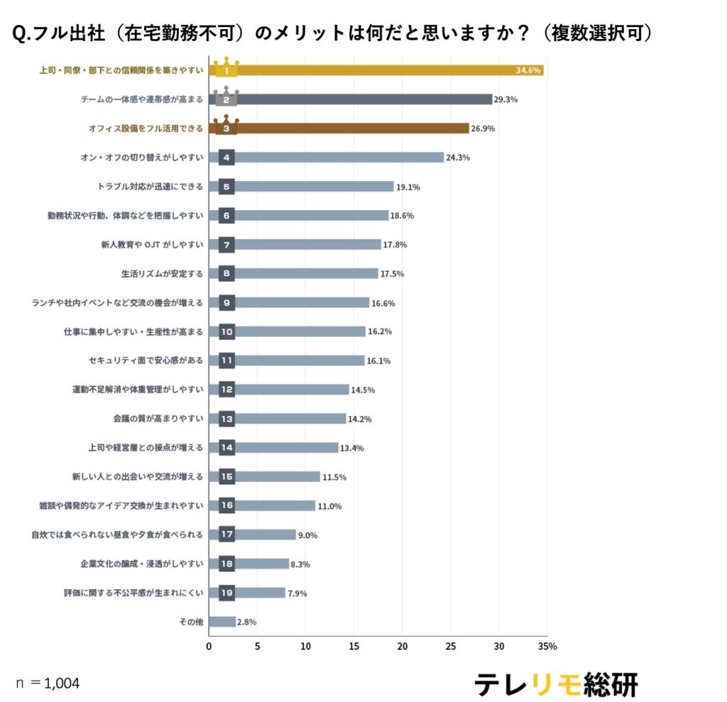 LASSIC「【テレリモ総研調査】フル出社のメリット・デメリットを徹底比較!ワーキングパーソン男女1,004名のリサーチから見えたその実態とは?」