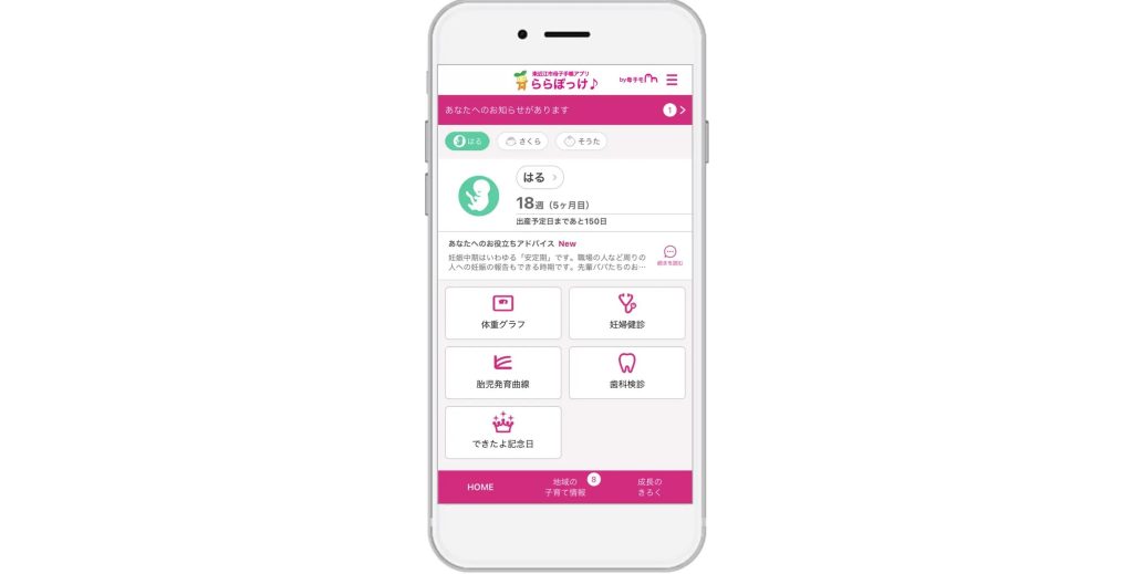 さらに、プッシュ通知や育児日記として使用できる「できたよ記念日」、社会的に環境変化が起こった際に、自治体からの注意情報などを配信する機能など、非常時においても出産・子育てができる環境づくりをサポートするとのことだ。
