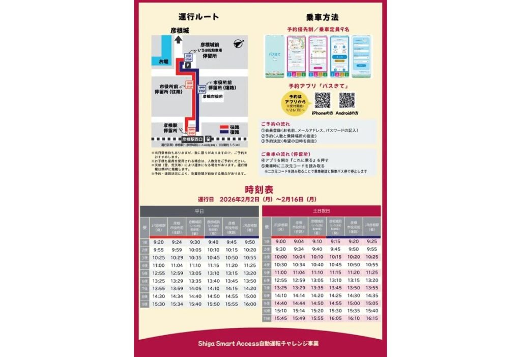 滋賀県彦根市で自動運転EVバスの実証運行を1月31日より開始 地域交通の新たな仕組みを検証