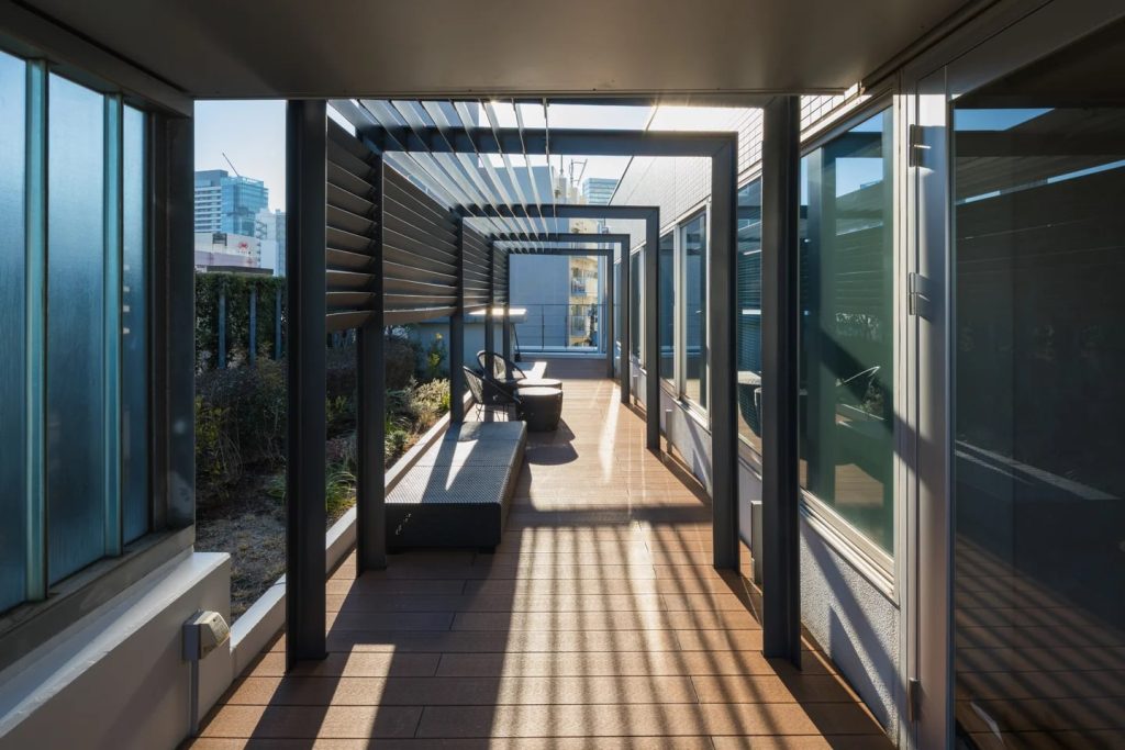 建物内には、1階および地下1階にラウンジを設け、新設した吹き抜けによって開放感のある空間を演出している。地下1階は入居者専用ラウンジとし、3階以上の屋上にはテラスを設置することで、オフィスワーカーが利用できる共用スペースを整備した。