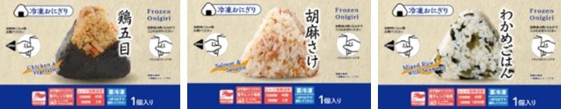 新たに展開する商品は、工場で製造したおにぎりを冷凍した「鶏五目おにぎり」(税込157円)、「胡麻さけおにぎり」(税込140円)、「わかめごはんおにぎり」(税込140円)の3品。冷凍おにぎりは、作り置きによる製造コスト削減が可能で、通常のおにぎりと比べて価格を1~2割抑えられるという。
