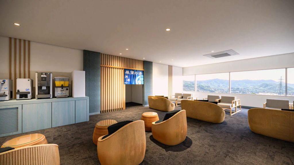 大浴場は最上階と3階の2カ所に設け、男女入替制を利用する。夜間には長崎の夜景を望めるほか、リニューアルに合わせて湯上りラウンジを新設し、ドリンクカウンターを設置する。